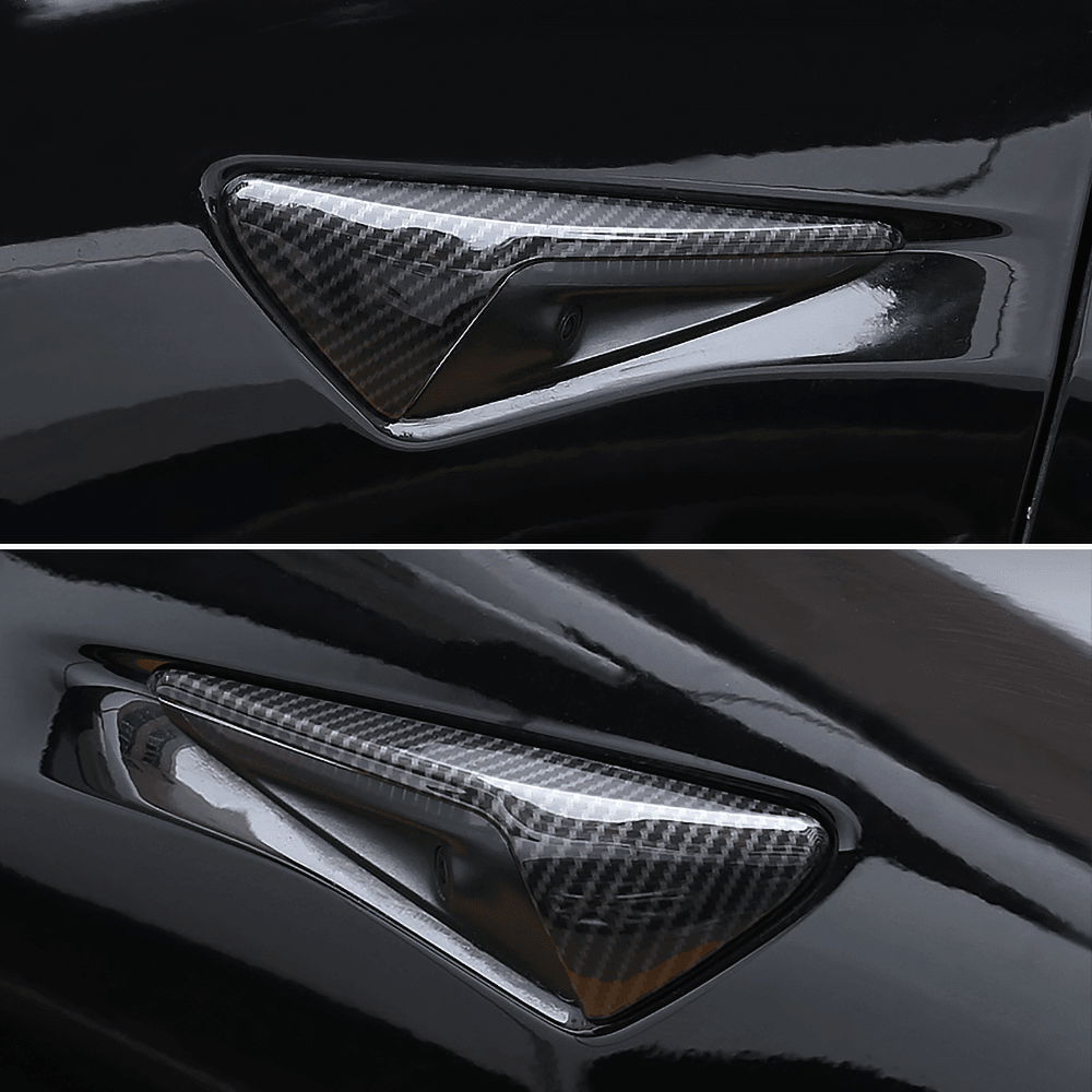 Model S 2021+ Real Molded Carbon Fiber Turn Signal Overlays - Top Half Style (Gen. 2)